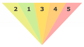 左から右にかけて、各プレイヤーのヒット範囲ポテンシャルに1〜5の評価が関連付けられています。 これらの値は、プレイ ヤーがボールを特定の方向に打つ確率を表します。 このグリッドの数字は常に15になります。 たとえば、このプレイヤーグリッドには右側に5があります。 5 ÷ 15 = 1 ÷ 3。 したがって、このプレイヤーは右側に打つ確率が1/3です。 彼は中央に3を持っています。 3 ÷ 15 = 1 ÷ 5、このプレイヤーはおおよそ1/5の確率で中央に打つでしょう。